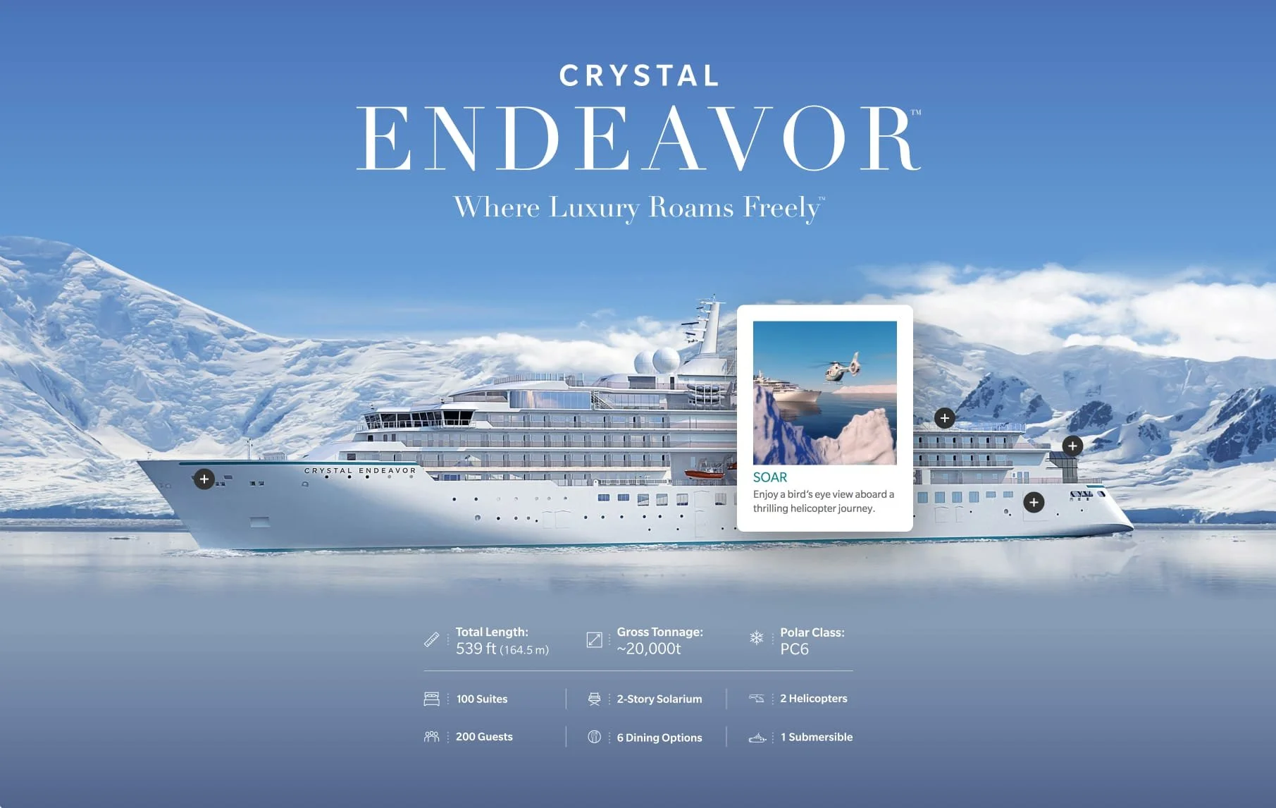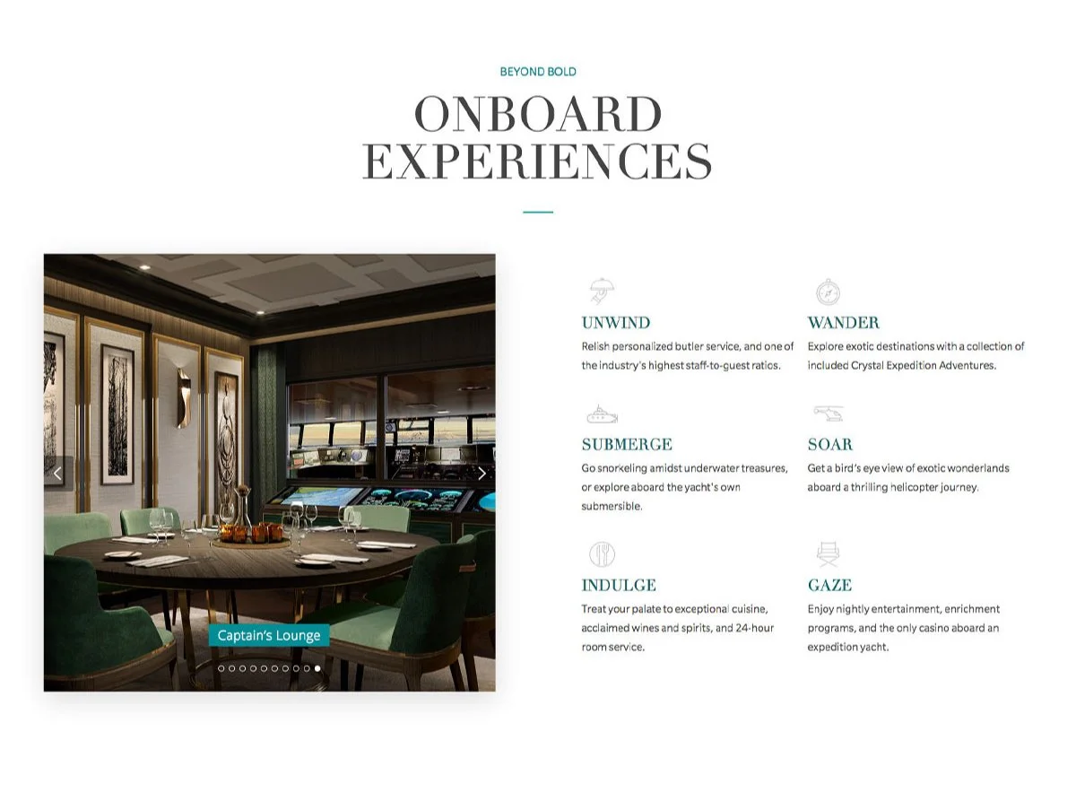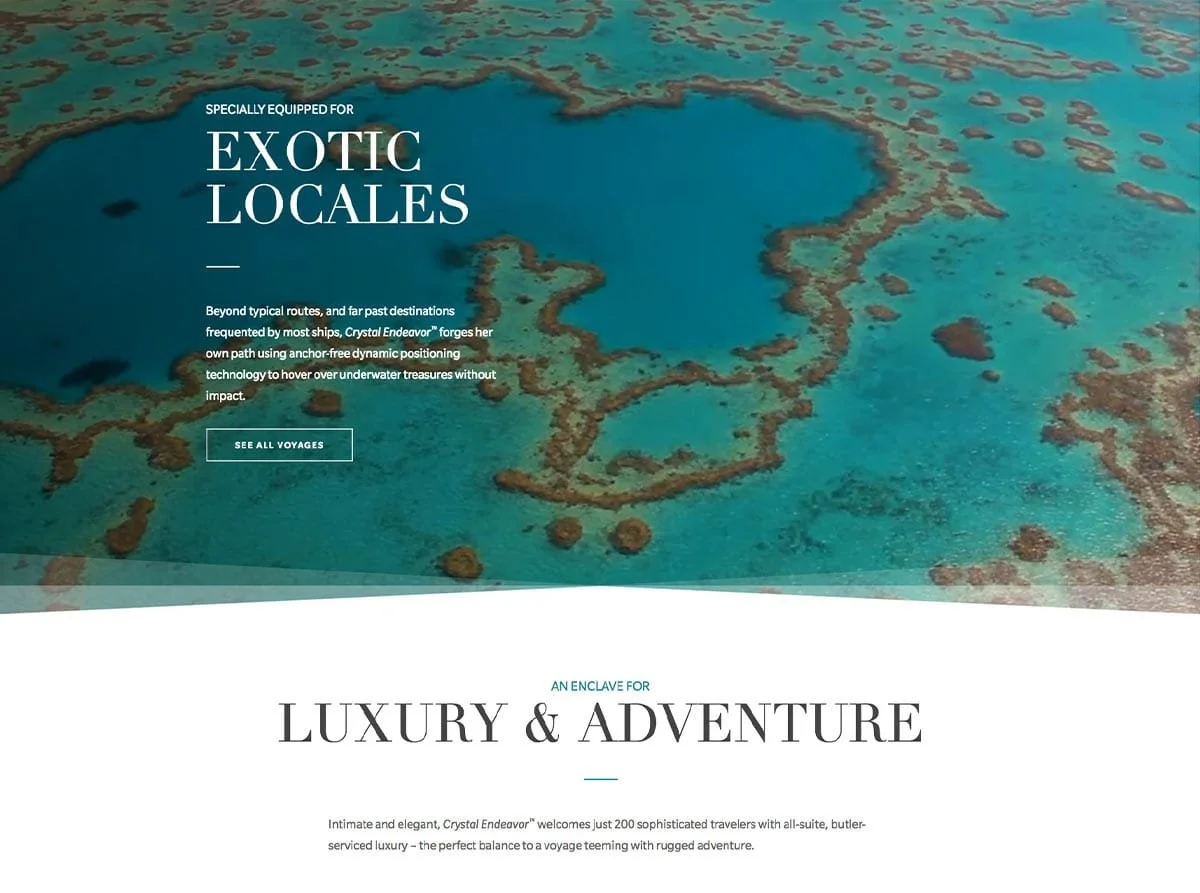 Crystal Cruises, the premier luxury cruise line, needed a sleek and sophisticated website to build buzz, and sell voyages on their upcoming ultra-luxury 200 guest expedition yacht—and fast.