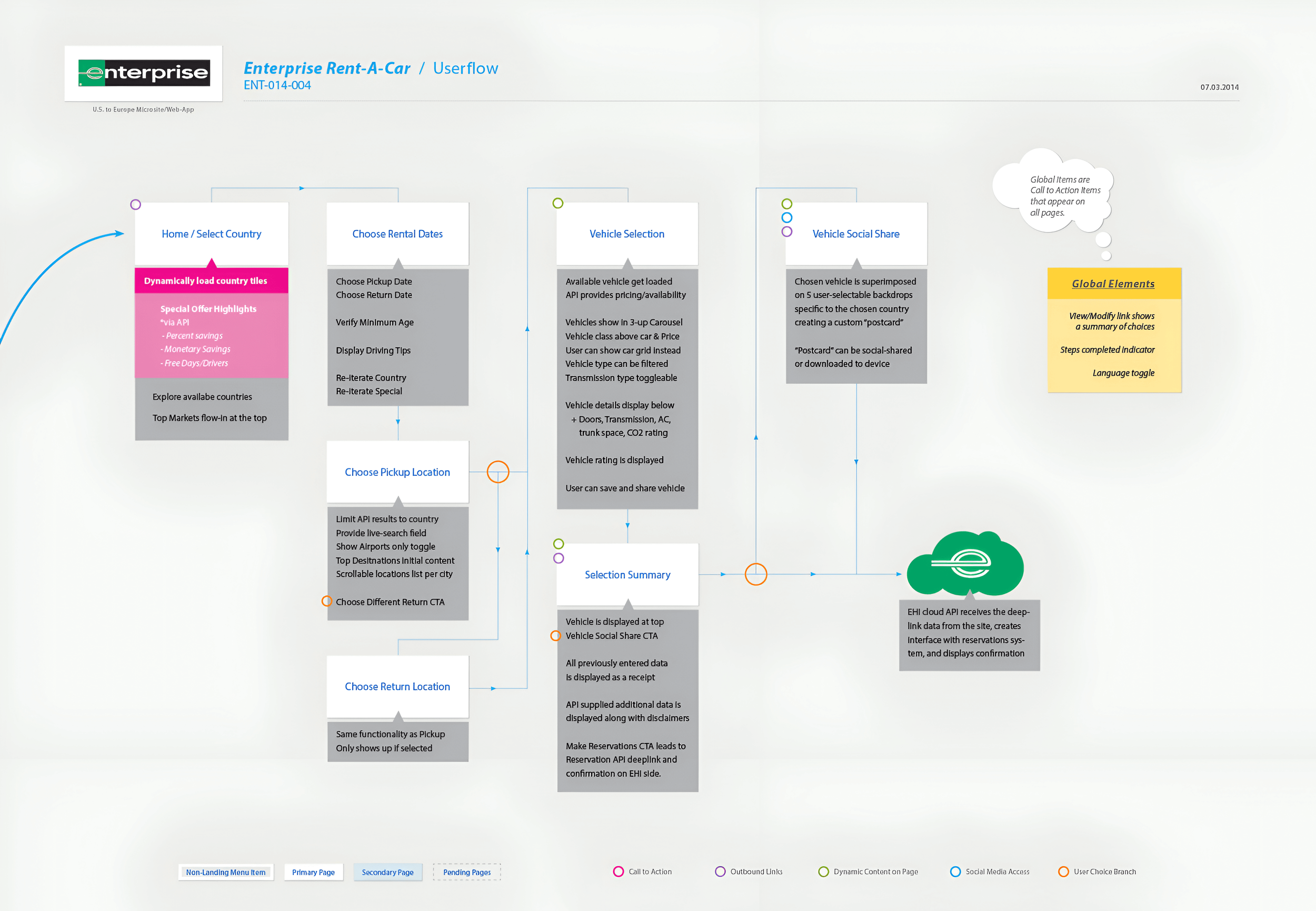 A user-flow document and wireframes helped Enterprise make their contributions at the right time and place during this projects accelerated development.