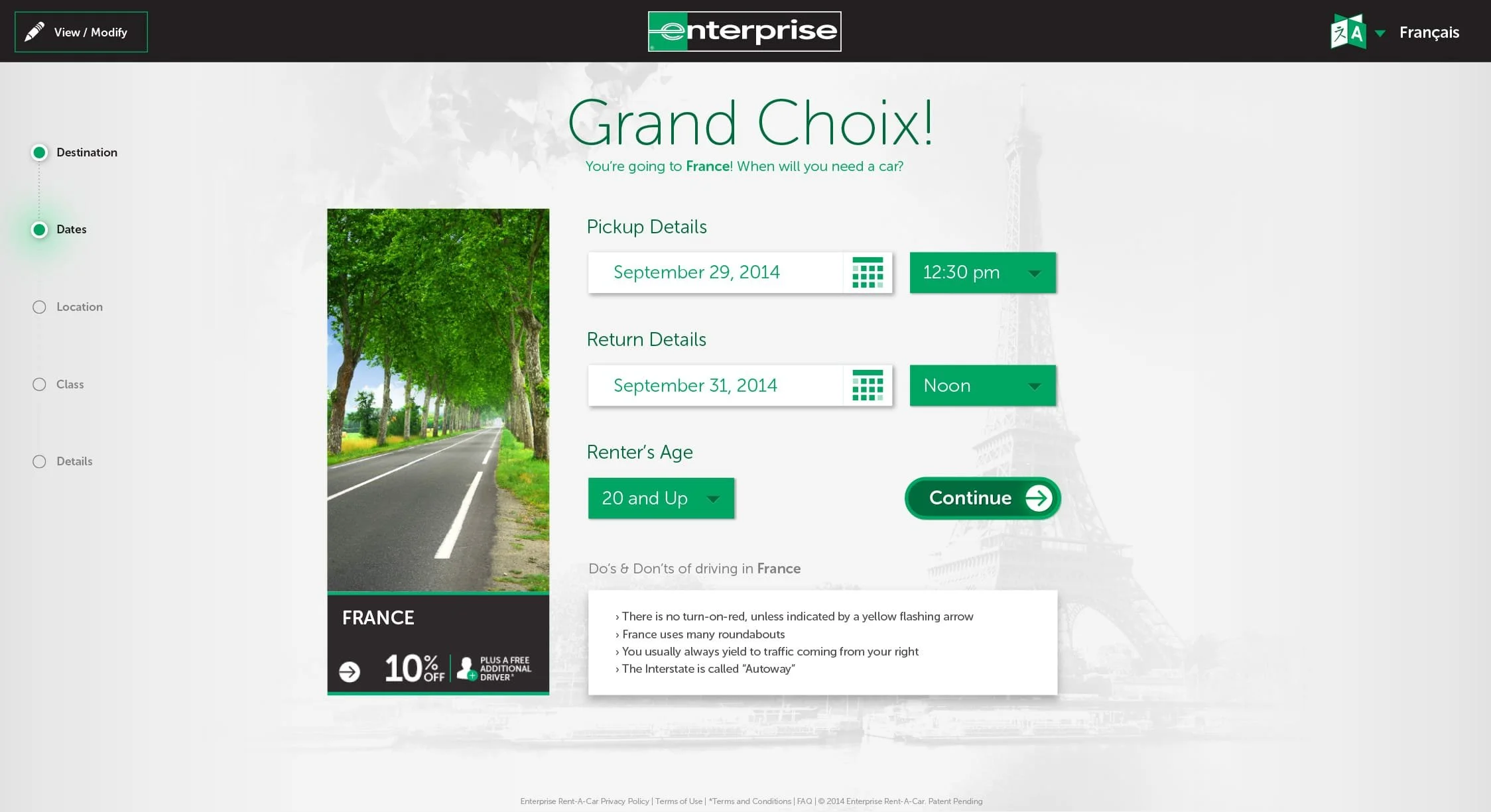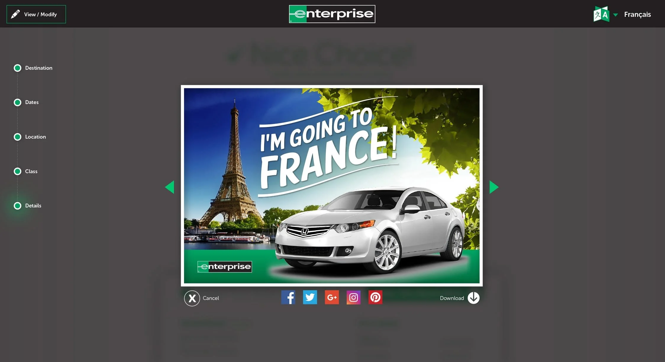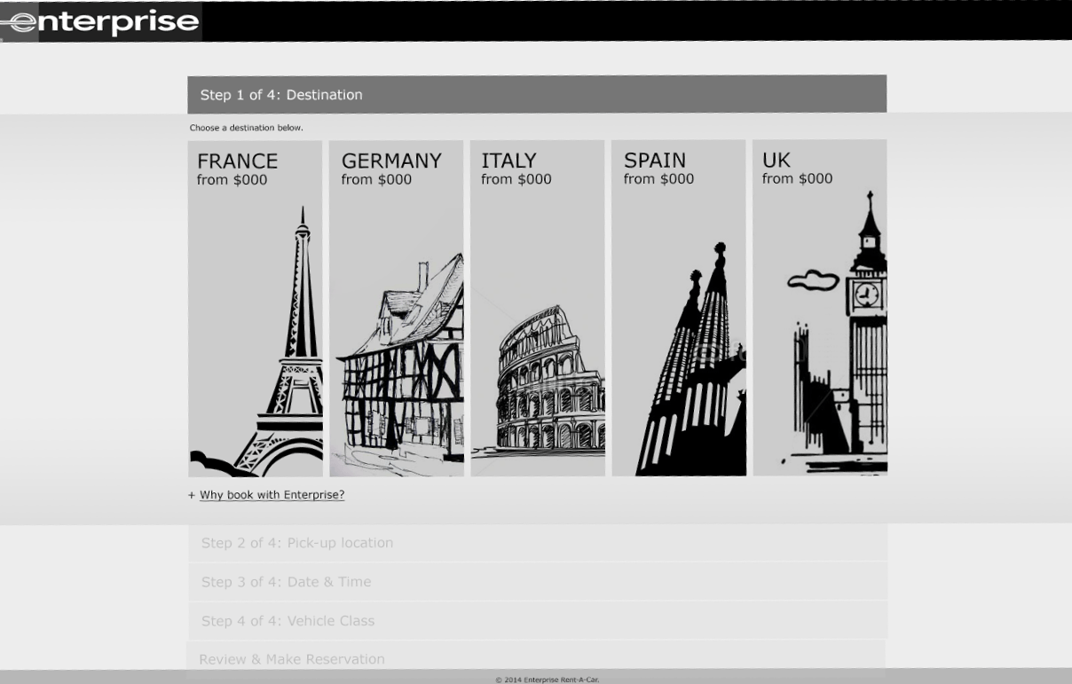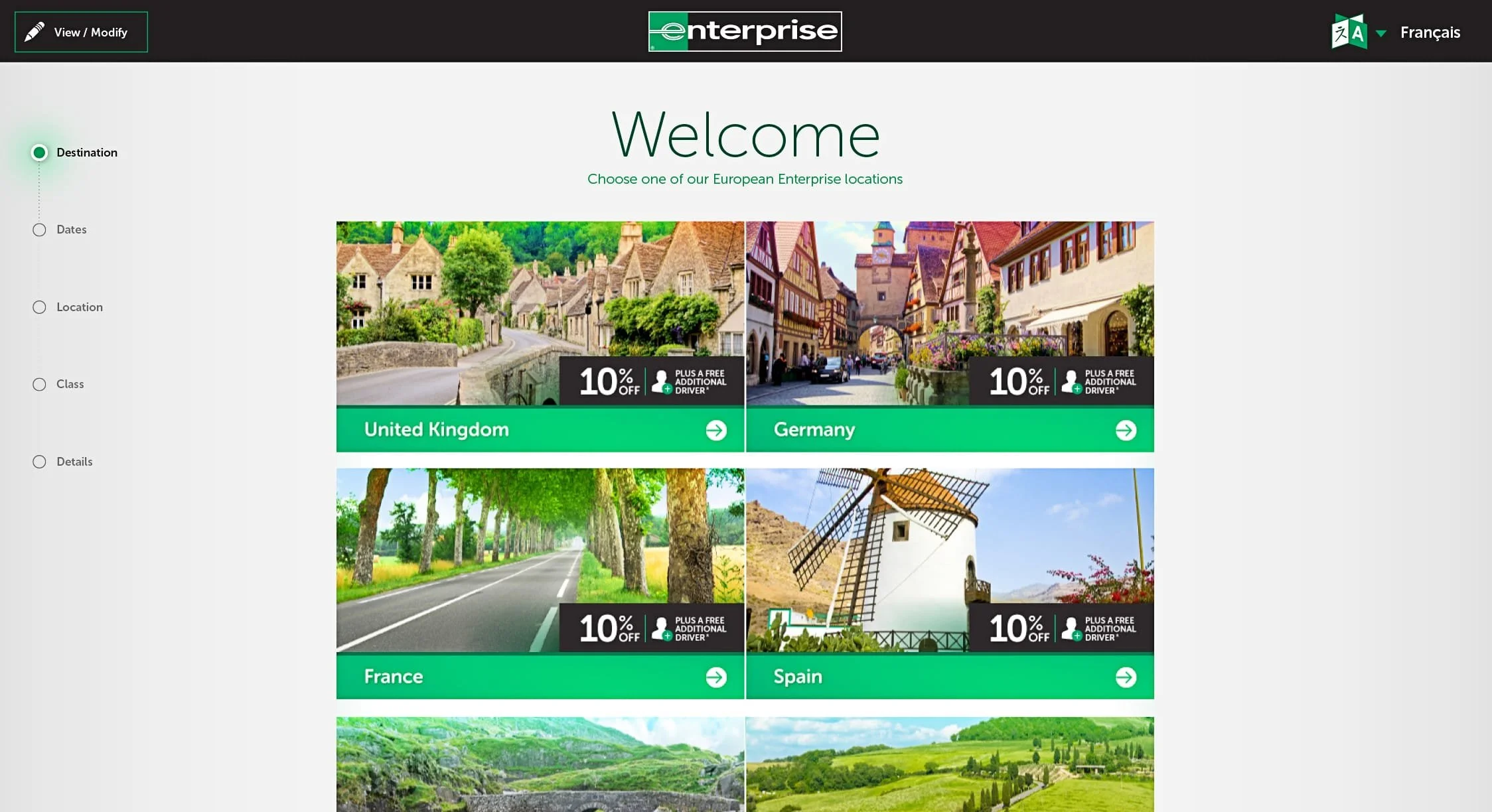 The new experience greatly increased bookings. Enterprise was so pleased, they decided to implement this interactive experience across 12 additional country websites, and also translate it into Spanish, French, German, and Italian.