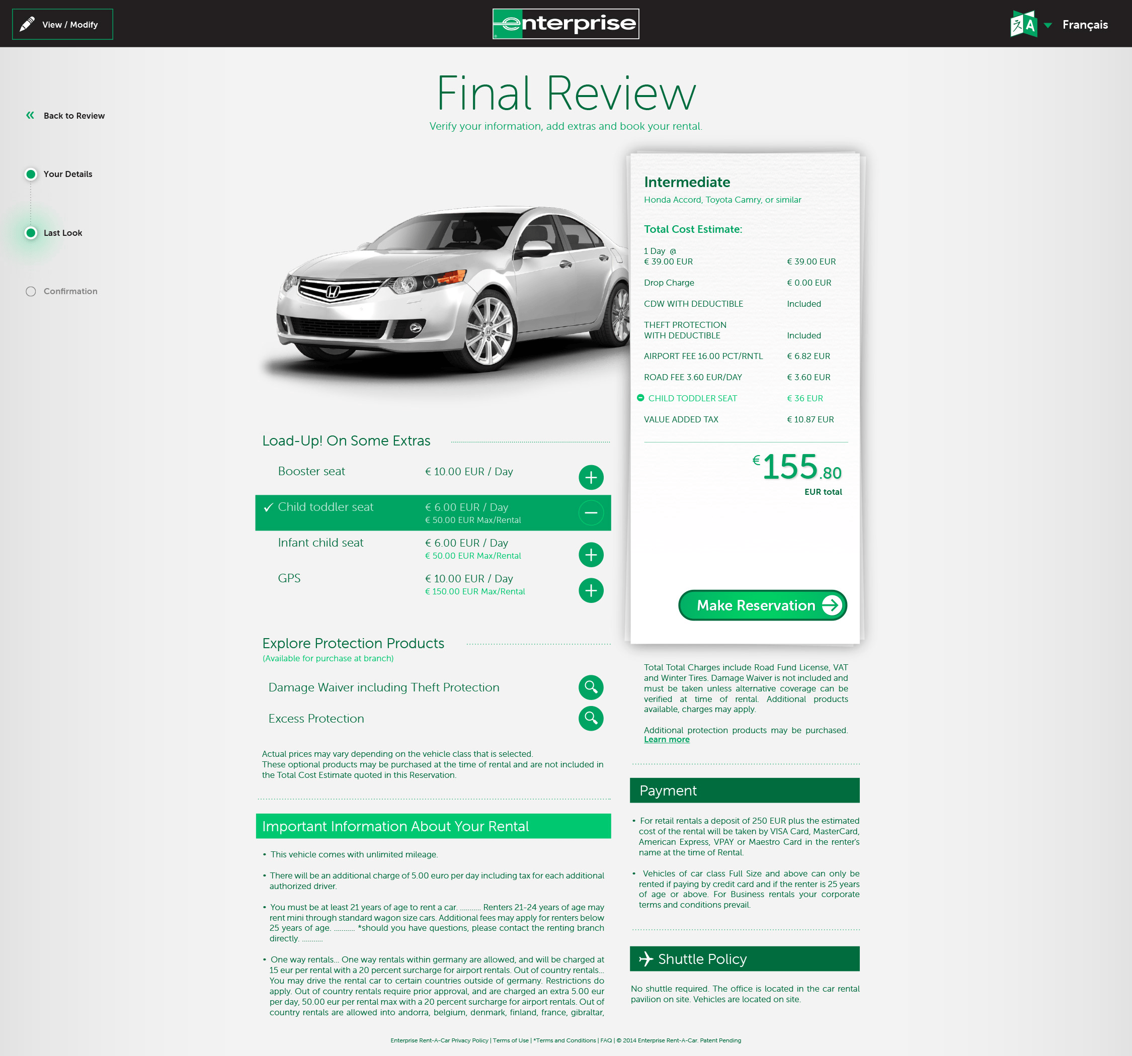 Despite its strong international brand, Enterprise struggled with online sales in Europe, lacking aesthetics, functionality, and UX to boost customer acquisition and support market expansion goals.