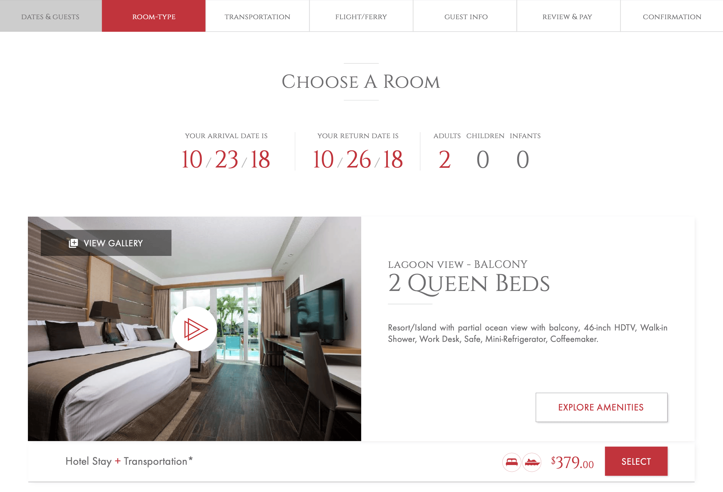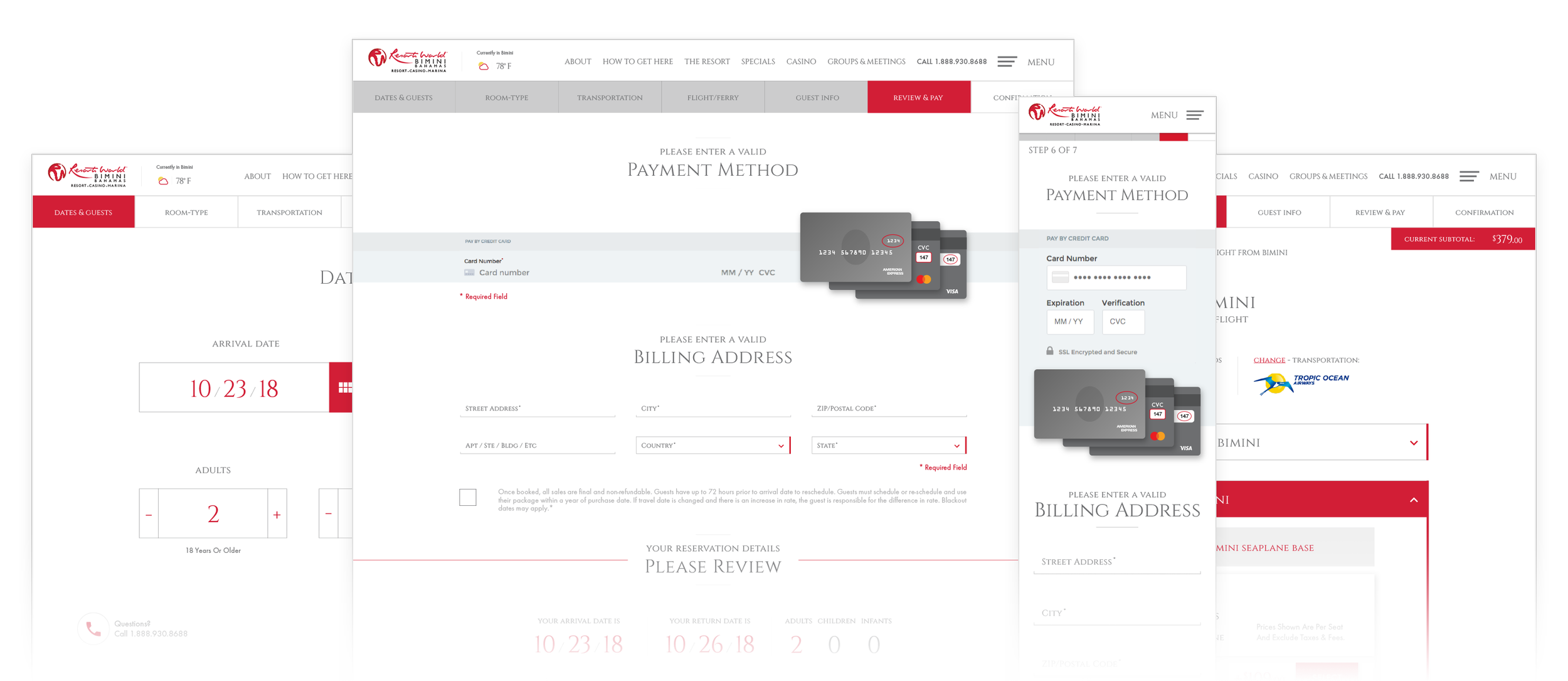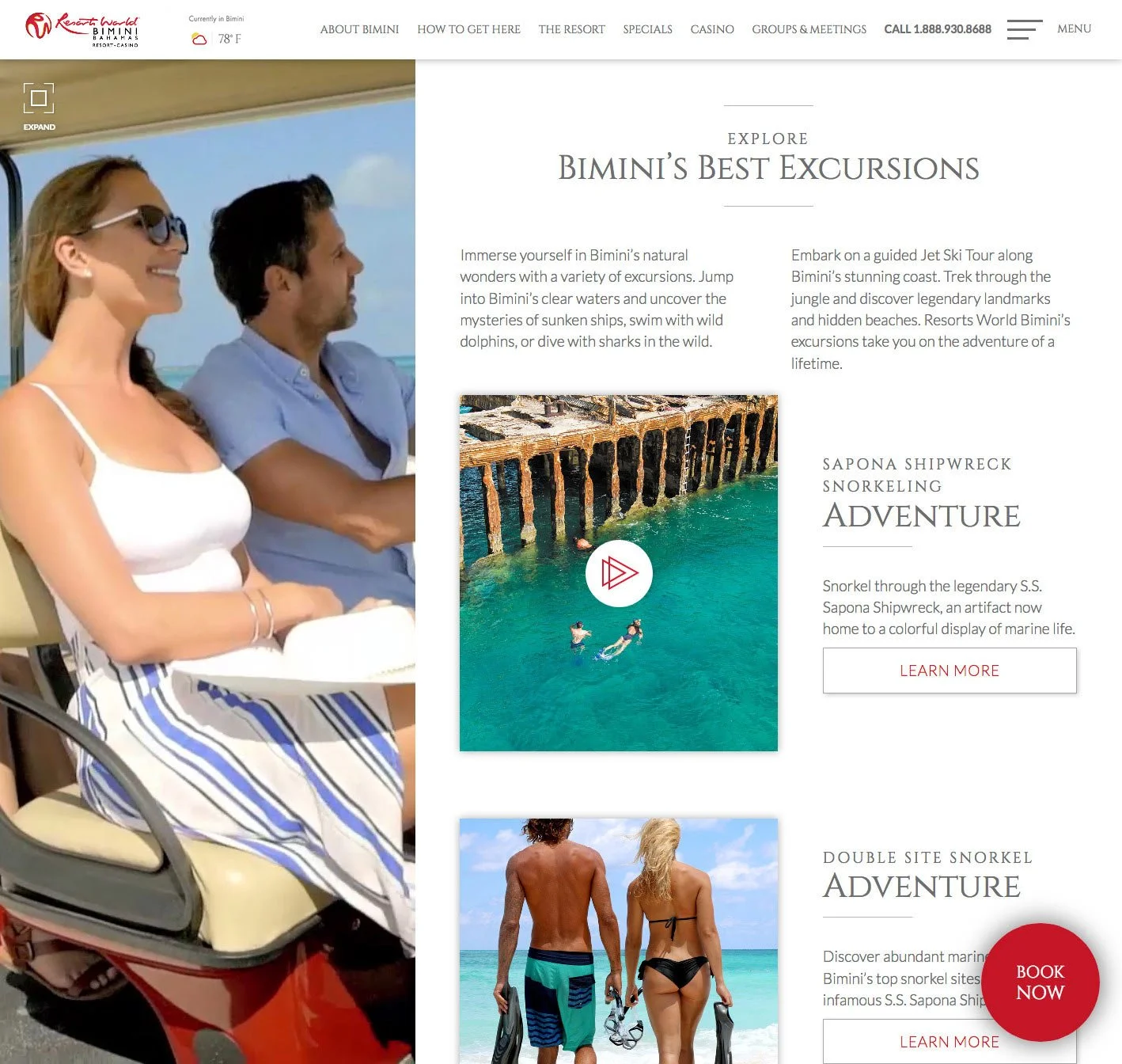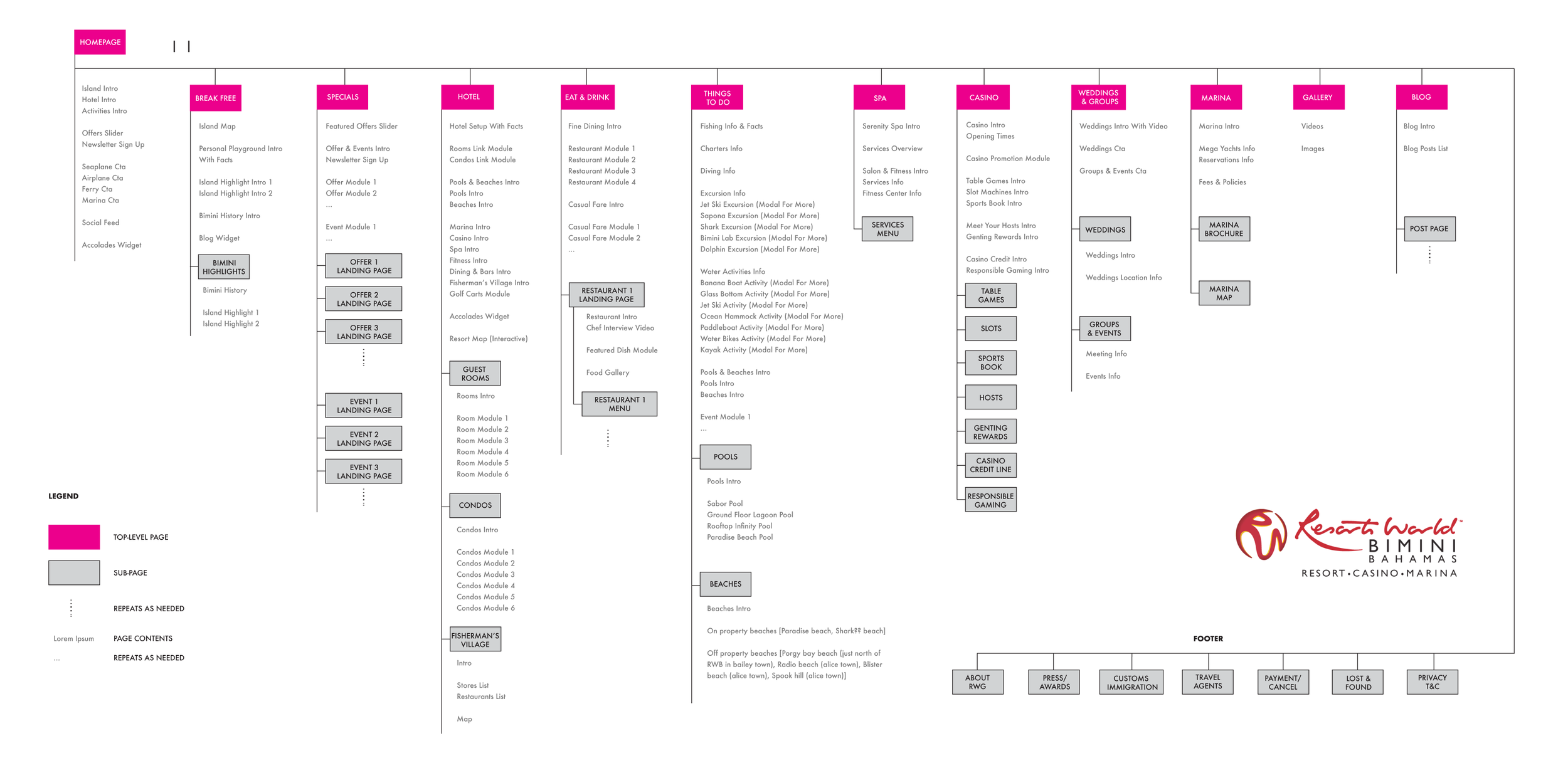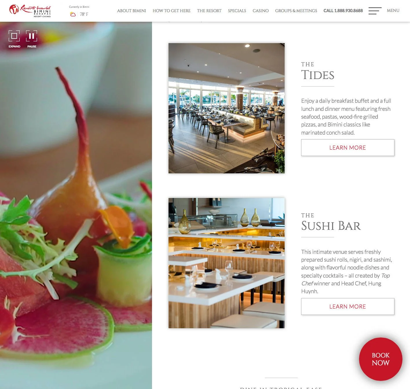 The content structure was designed in a way to segment relevant information blocks on a white canvas in such a way, that there is always background video of the island and resort showing through on one side.